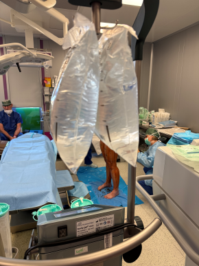 Ya en el quirófano, me desnudé para que pudieran cubrirme con Betadine. Después me ayudaron a subirme a la mesa de operaciones, charlaron un poco conmigo y me administraron la anestesia.