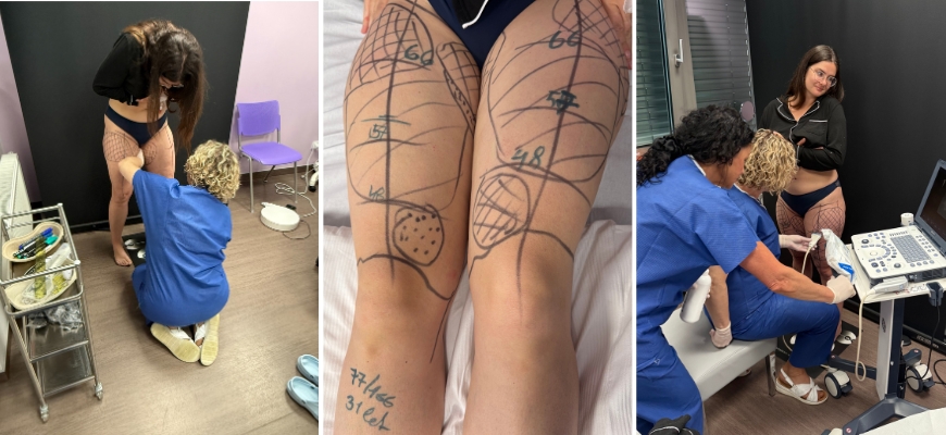Después, Robert, asistente de la clínica, marcó en mi cuerpo las zonas que iban a ser intervenidas. También me realizaron una ecografía para evaluar con precisión la cantidad de grasa que debía retirarse.